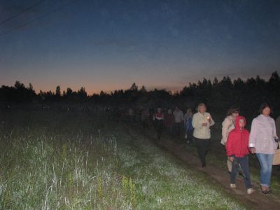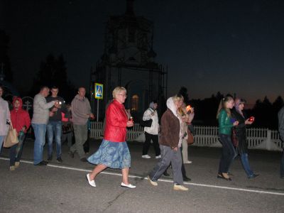 По окончании панихиды участники акции прошли крестным ходом от храма к Соловьевой переправе. Колонна двигалась торжественно молча, и лишь огоньки свечей неслышно шептались с душами тысяч погибших воинов. Люди не слышали этого шепота, но испытывали щемящее чувство высокой, бесконечной, светлой грусти.