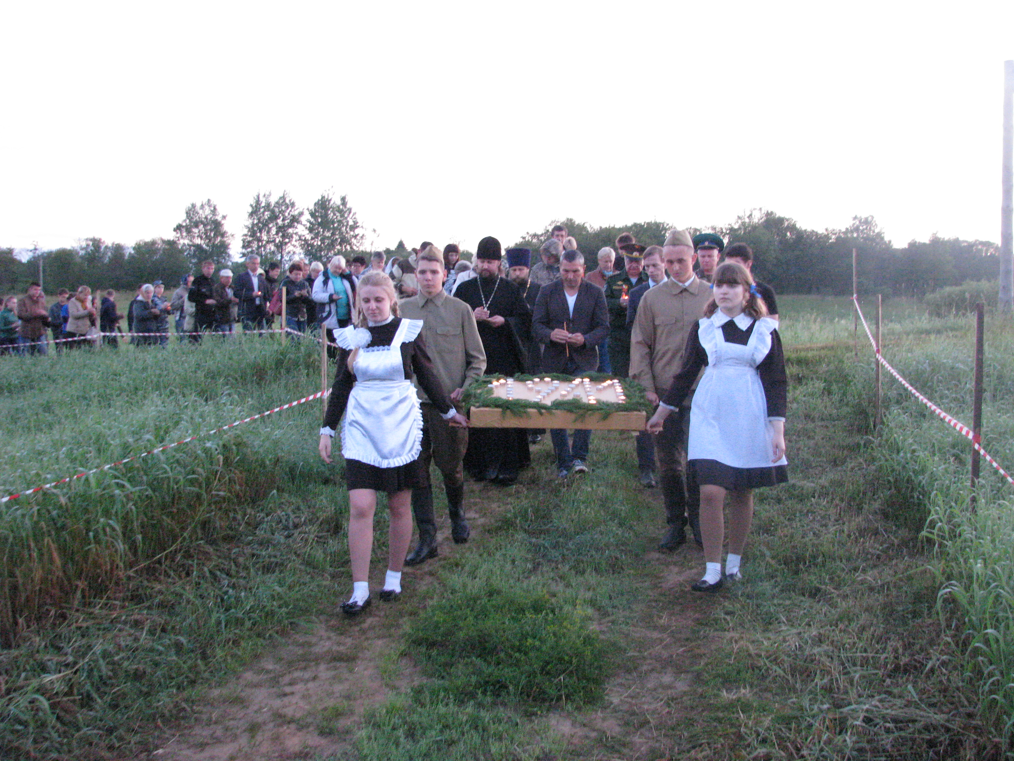 По окончании панихиды участники акции прошли крестным ходом от храма к Соловьевой переправе. Колонна двигалась торжественно молча, и лишь огоньки свечей неслышно шептались с душами тысяч погибших воинов. Люди не слышали этого шепота, но испытывали щемящее чувство высокой, бесконечной, светлой грусти.