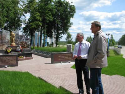 Накануне памятной даты мемориальный комплекс в д. Соловьево посетил Глава муниципального образования «Кардымовский район» Смоленской области Е.В. Беляев. Он осмотрел места будущих мероприятий, обсудил с директором ООО «Коммунремстрой» В.И. Ивановским технические вопросы.