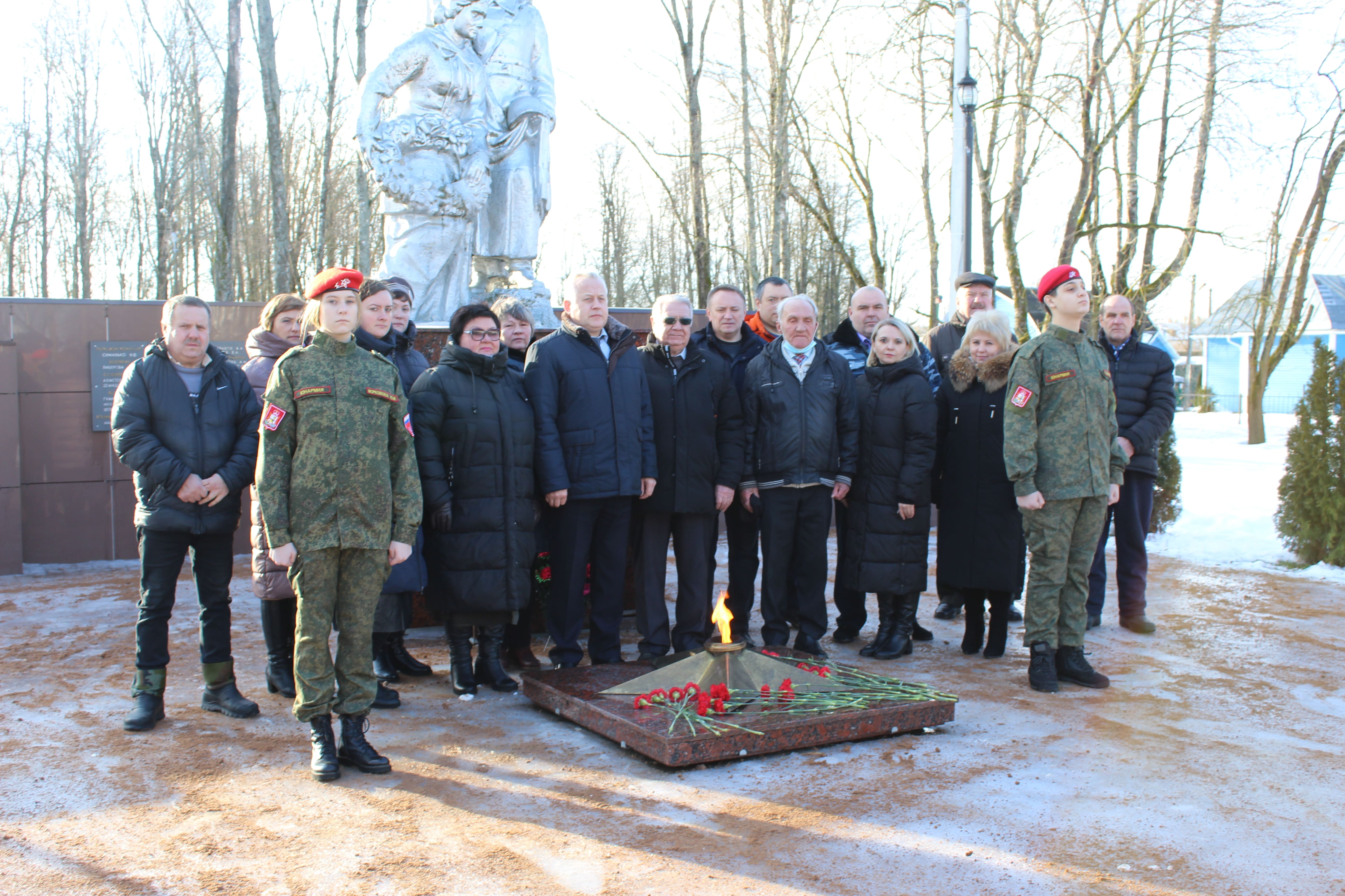 22 февраля 2022 года - в канун празднования Дня защитника Отечества, коллектив Администрации Кардымовского района совместно с представителями общественных организаций традиционно пришли к братской могиле 297 советских воинов и партизан, погибших в боях с немецко-фашистскими захватчиками в 1941-1943 гг. в центре п. Кардымово. Присутствующие почтили память павших в годы Великой Отечественной войны и возложили цветы и венки к братской могиле.