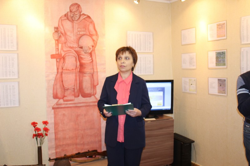 Продолжилось мероприятие в Кардымовском историко-краеведческом музее. Директор музея Ольга Склярова рассказала присутствующим, что на территории Кардымовского района расположено, пять Братских захоронений и одно «Поле памяти», где захоронены более пяти тысяч солдат, офицеров и участников партизанских отрядов. Более половины из них числятся неизвестными. Регулярно, с момента появления в 80-е годы поисковых отрядов на Смоленщине, на территории Кардымовского района проводятся Вахты памяти с последующим перезахоронения останков солдат, обнаруженных в ходе поисковых работ. С 2002 года перезахоронения проводятся на «Поле памяти» в деревне Соловьево.
