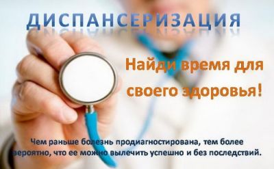 Регулярное прохождение диспансеризации позволит Вам в значительной степени уменьшить вероятность развития наиболее опасных заболеваний, являющихся основной причиной инвалидности и преждевременной смертности населения или выявить их на ранней стадии развития, когда их лечение наиболее эффективно. Но без инициативы о собственном здоровье самого человека медицина бессильна.