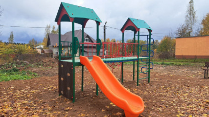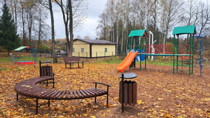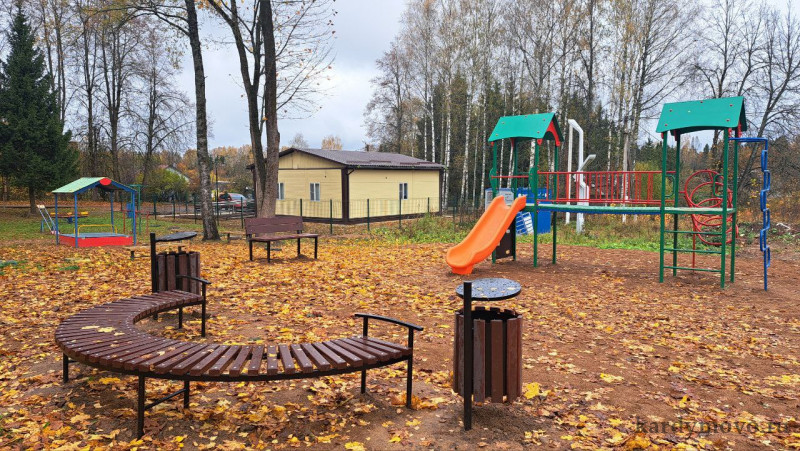 В деревне Каменка установили новый игровой городок для малышей. Для отдыха и игр рядом с городком установлены новые современные лавочки с урнами для мусора.