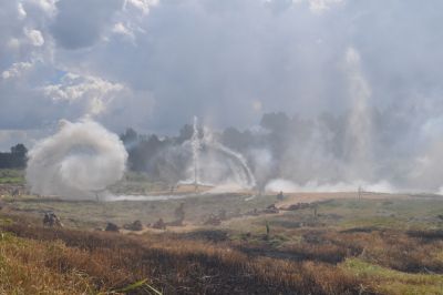 На Соловьевой переправе вновь звучали выстрелы, атаки сменяли контратаки, дело доходило до рукопашной. Эффектные взрывы вызывали море эмоций у публики. Запах пороха и дыма витали в воздухе.