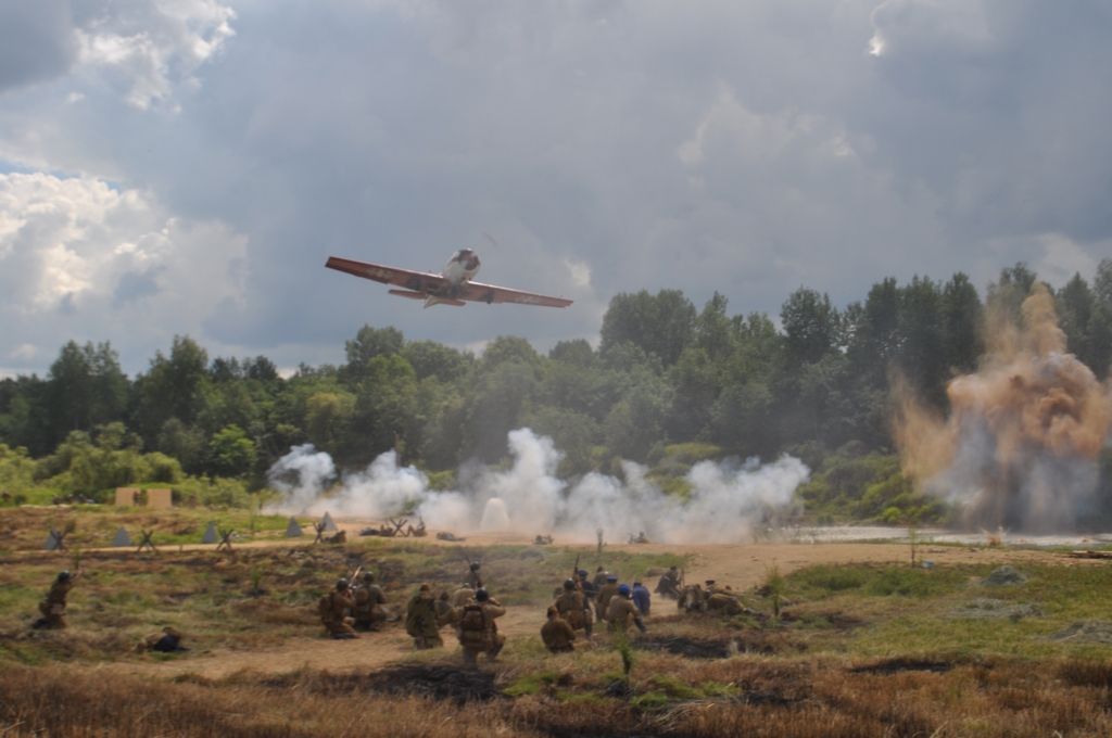 Стоит отметить, что действо проходило не только на земле, но и воздухе. «Вражеская» авиация вновь бомбила Соловьеву переправу, как когда-то в сорок первом…