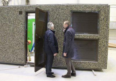 Егор Кочетков рассказал о применении нового покрытия для блоков подстанции, так называемого моющегося бетона, который вполне можно назвать универсальным покрытием, так как с его поверхности с легкостью удаляются любые надписи или загрязнения. В России в настоящее время такое покрытие применяется только на «БалтЭнергоМаше».