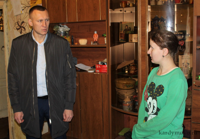 Глава Кардымовского района Олег Смоляков совместно со своим заместителем Натальей Игнатенковой и Главой Каменского сельского поселения Валентиной Шевелевой приехал в семью Натальи Соколовой, которая проживает в д. Каменка и воспитывает двоих несовершеннолетних сыновей.