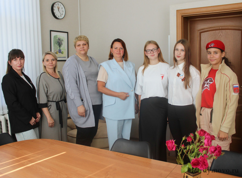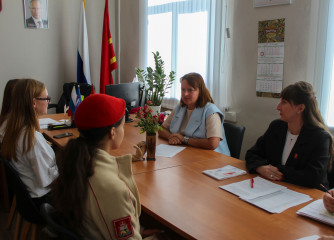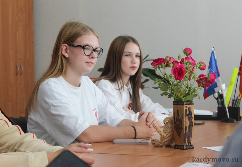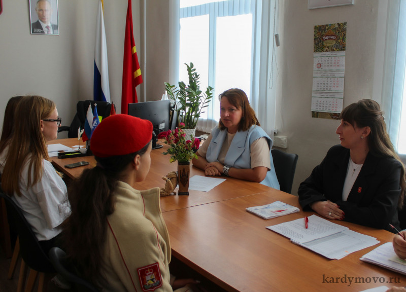 Глава округа пообщалась с председателем Кардымовского отделения движения детей и молодёжи «Движение первых» Натальей Симоновой и активистками волонтерских движений Светланой Козловой, Варварой Поляковой и Дарьей Блинковой.