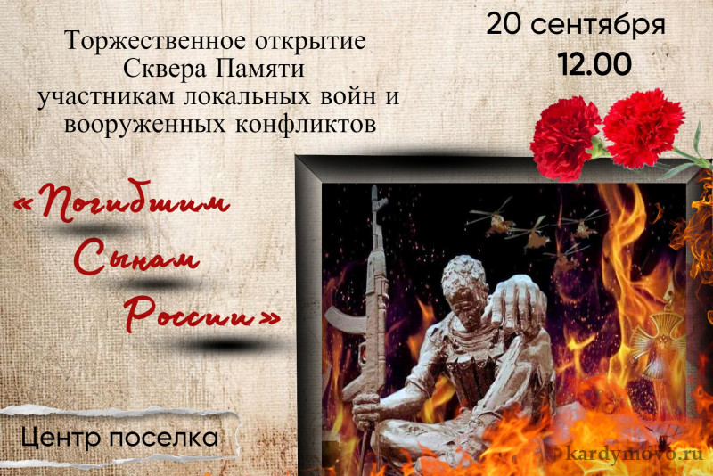 Приглашаем жителей и гостей Кардымовского района посетить торжественное открытие Сквера Памяти участникам локальных войн и конфликтов.