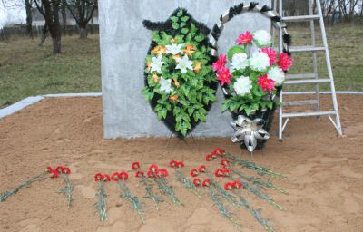 К подножию памятника погибшим односельчанам возложили венки и цветы.