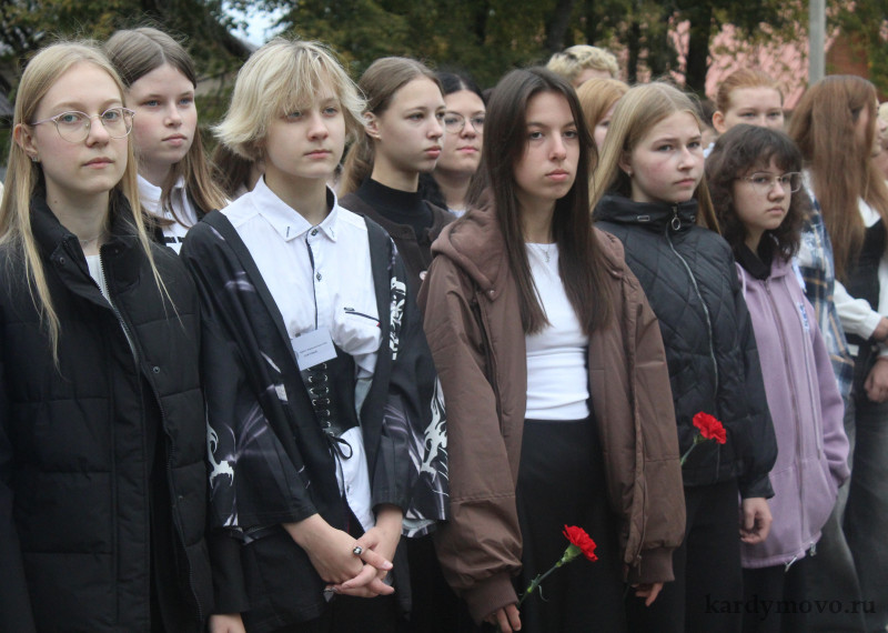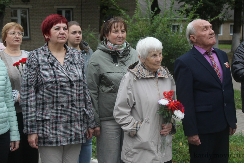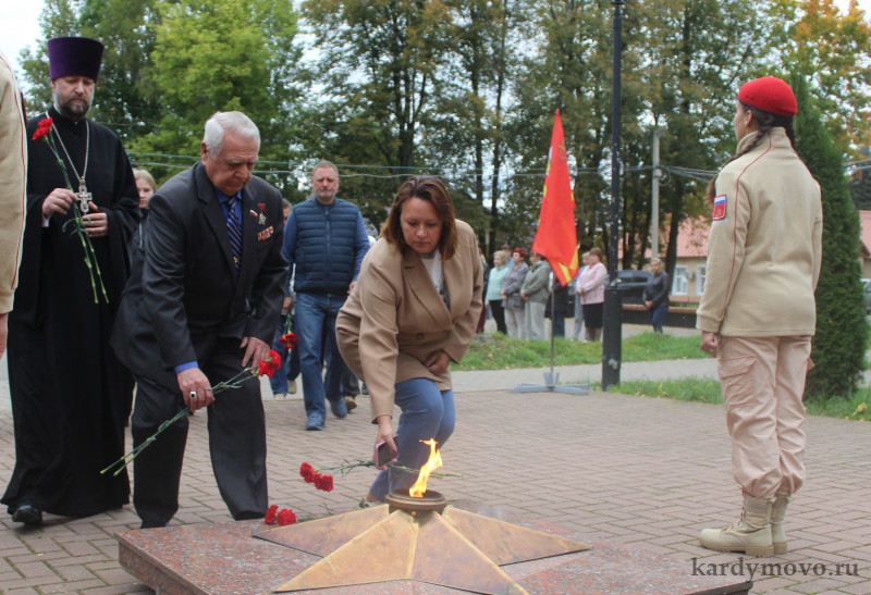 Почтить память защитников района к Братской могиле, где захоронены 297 советских воинов, погибших в годы Великой Отечественной войны, пришли: руководитель Кардымовского округа Марина Левченкова, председатель окружного Совета депутатов Виолетта Козлова, настоятель храма в честь Казанской иконы пресвятой Богородицы поселка Кардымово протоиерей Фёдор Новак, руководители силовых ведомств района, коллективы общественных организаций, учащиеся школ района.