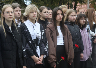 Присутствующие почтили память погибших воинов минутой молчания и возложили цветы к Братской могиле, отдав дань памяти и уважения всем тем, кто ценой своей жизни подарил нам мир.