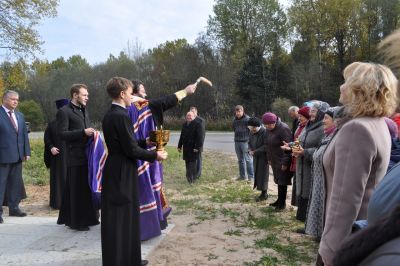 В освящении креста приняли участие секретарь Смоленской и Вяземской епархии отец Павел, благочинный Ярцевского благочиннического округа протоиерей Василий Мовчанюк, настоятель Свято-Казанского храма п. Кардымово Феодор Новак и другие священнослужители Смоленской области.