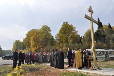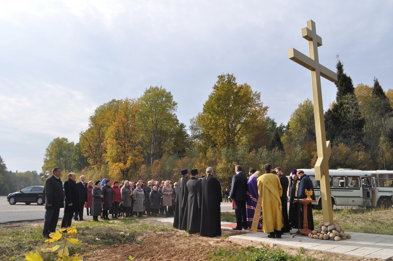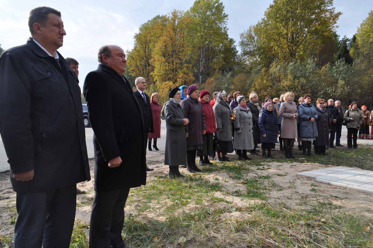 На перекрестке дорог, у места, где установлен крест, собрались не только руководители района и священнослужители, но и координатор попечительского Совета некоммерческой организации «Фонд содействия примирению народов, участвовавших в военных конфликтах» Владимир Шаргаев, руководители и представители организаций, предприятий и учреждений района, прихожане – жители и гости Кардымовского района.