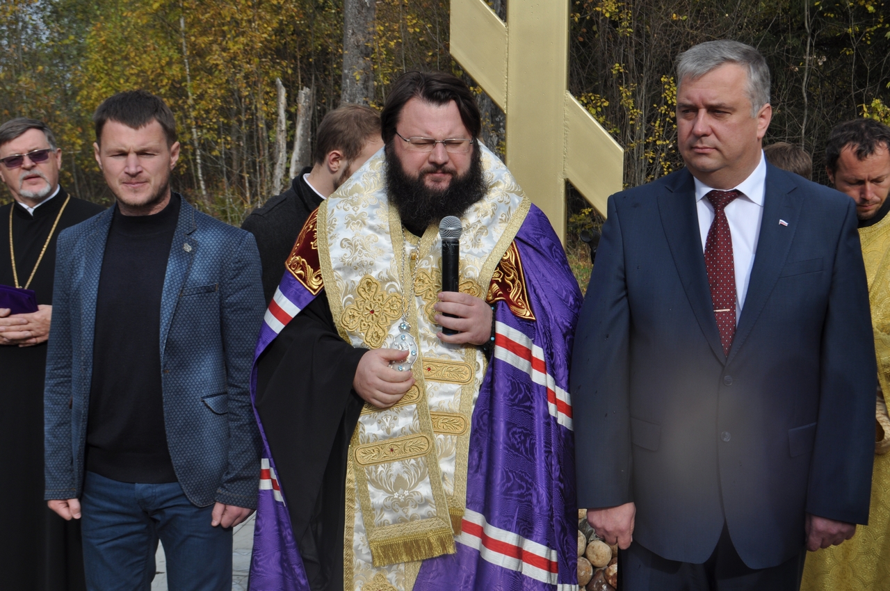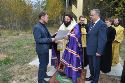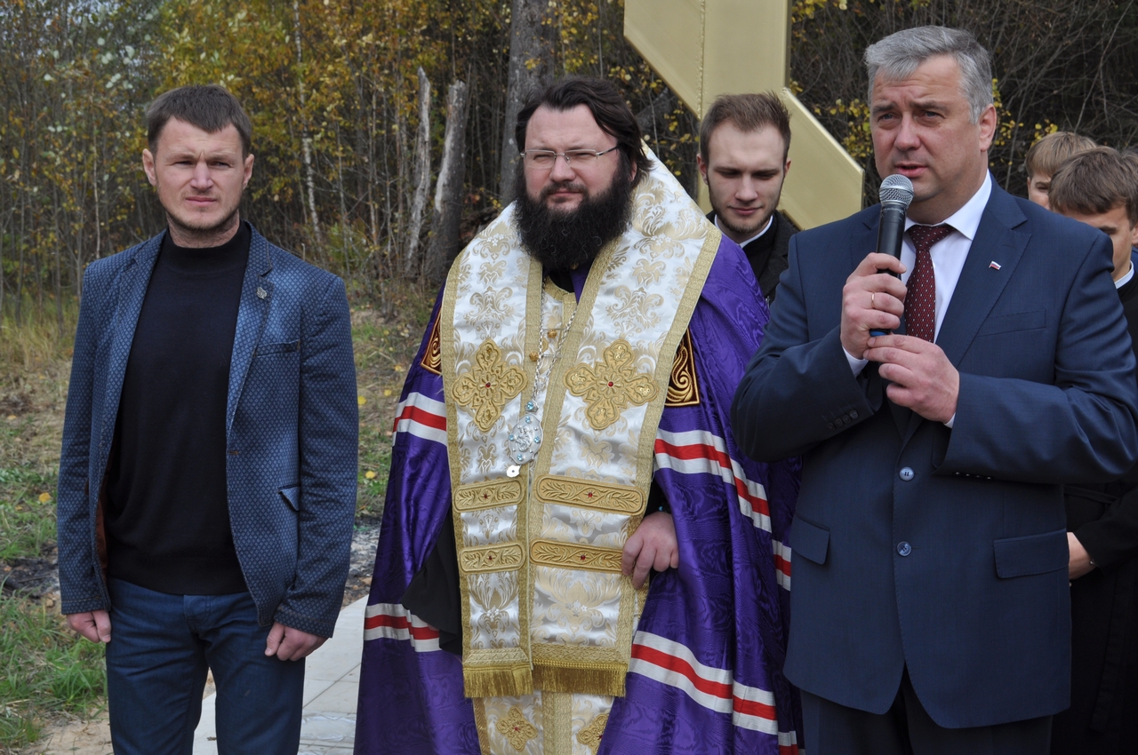 Олег Иванов, приветствуя всех принявших участие в мероприятии, отметил, что кардымовская земля не единожды славна историческими событиями, память о которых жива во многих сердцах по сей день. Он поздравил с событием, которое имеет особое значение для жизни каждого православного кардымовца, а также поблагодарил владыку Исидора за участие в освящении Поклонного креста.